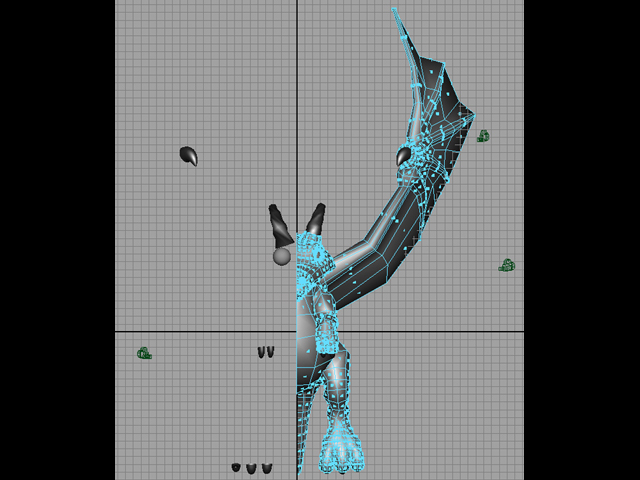 8:When all the UVs are layed out for this half of the dragon, we can then duplicate the model to create the other half. This new half will retain all the UV information from the original. However, the problem is that they are stacked on top of each other each. So, to get rid of this overlap, we should do a flip UV on the left half of the whelp.